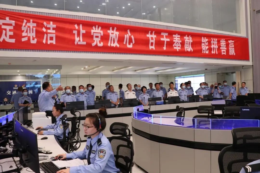 On the morning of June 24th, the detachment's inspection and learning team went deep into the command center of the Traffic Police Detachment of the Linfen Public Security Bureau to watch the operation process of "Traffic Safety Police Cloud Platform", 5G+urban truck intelligent traffic management platform, 5G+mobile police vehicle management system. Understand the live broadcast of "one village, one police officer", "one group and one police" and traffic conditions. Subsequently, the detachment's inspection and learning team went deep into the main streets such as Linfen Guolou North Street, Zhongjie Street and other major streets to observe static traffic management and helmets.