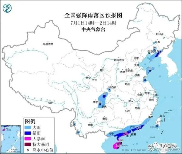 It is expected that from 14:00 on July 1st to 14:00, there are heavy rain in central and southern Guangdong, south of Guangxi, Hainan Island, eastern and southern Liaoning, Shandong Peninsula, and eastern parts of the southwestern region. Among them, the southwestern coast of Guangdong There are heavy rains in parts of Hainan Island and other places, and heavy rainstorms in the eastern part of Hainan Island (250-280 mm). The above -mentioned areas are accompanied by short -term and heavy precipitation (the maximum hourly rainfall is 20-50 mm, and the local area can exceed 70 mm), and there are strong convective weather such as thunderstorms in the local area.