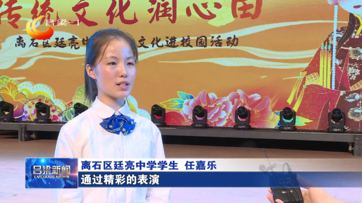 [At the same time] Ren Jiale, a student of Tingliang Middle School in Shi District: Through wonderful performances, I have also had a deeper understanding of opera culture, and deeply appreciated the charm of our excellent traditional culture. As a middle school student, we must understand and learn traditional culture and let the seeds of traditional culture take root in our hearts.