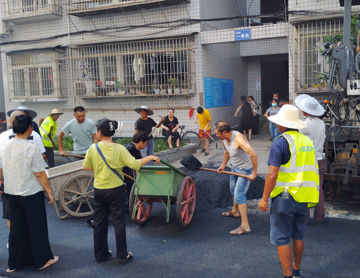 Early in the morning, residents of the community spontaneously organized to participate in the blackening of the pavement of the community, helped the construction staff to clear the field, maintained the order of the scene, and provided tools such as shovels and brooms. With the active cooperation of the residents, in just one day, the original potholes were changed. During the period, there was another resident who was unwilling to leave the name to send 2 boxes of mineral water for the construction staff and community staff, and expressed his thanks to the party and the government. Now Lu Ping, the children and the elderly are not afraid of wrestling at night.