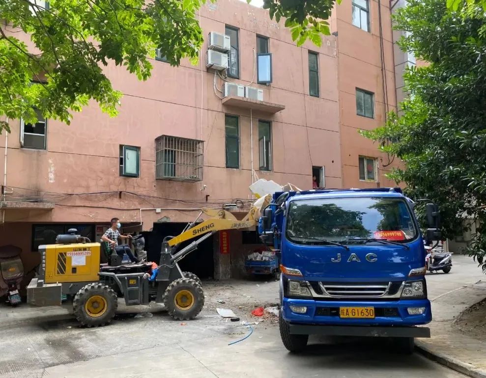 The rectification point of the one -room garbage stacking point in the Hanlin Yaju Community has not been completed. The picture shows a forklift that is transporting the garbage to the truck. The subsequent community will re -locate the joint property and transfer the construction garbage dump point to the outdoors.