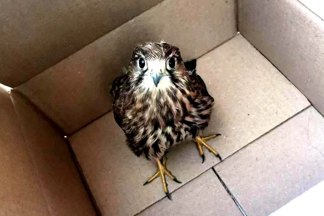 The police carefully placed it into the carton. In order to allow the young bird to be treated in time, the police immediately sent it to the animal rescue station of the Forestry Bureau of Lingchuan County.Animal -red pupae belongs to the small raptors.
