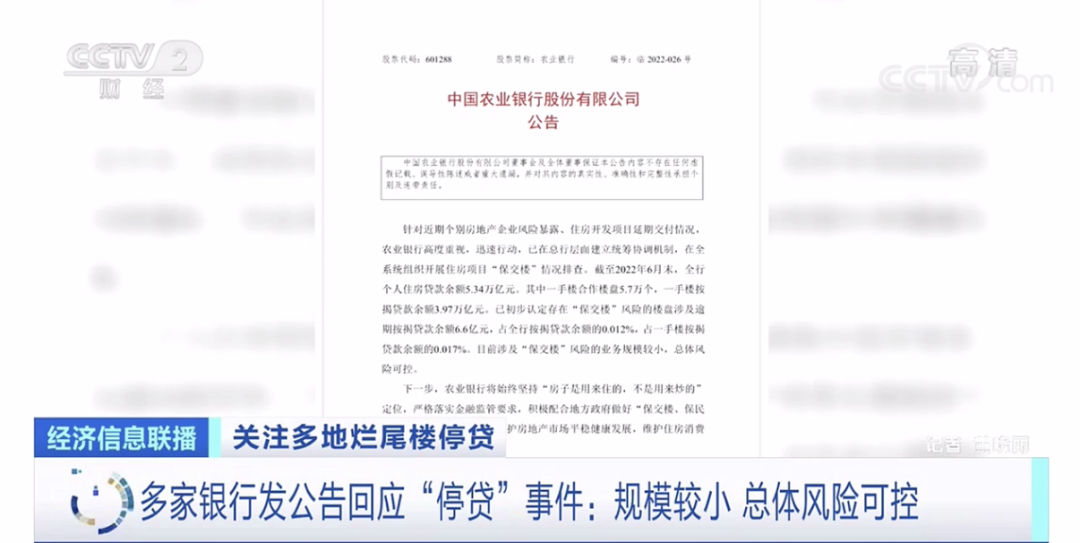 Today, a number of banks issued an announcement saying that the real estate involved in the recent "suspension of loans" incidents has been investigated. The banks currently announced that the banks involved in the announcement of the loan business are small and will not have a significant impact on bank operations.