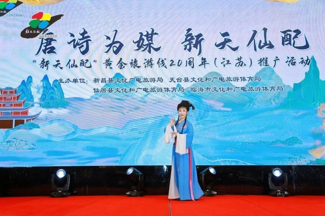 Tang Shi for the 20th anniversary of the "Xintianxian" Golden Tourism Line (Jiangsu) promotion activity of the "Xintianxian" of the media.